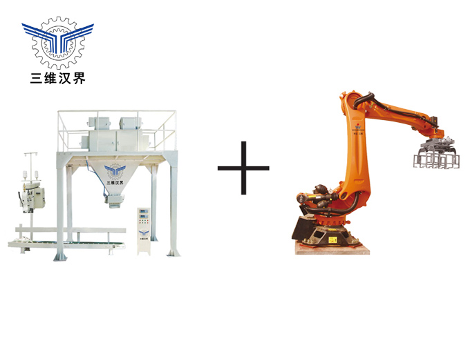 減少人力,智能化、自動化是現(xiàn)代各個行業(yè)不論大小企業(yè)都在努力追求的生產(chǎn)管理愿景。人工的包裝碼垛對很多行業(yè)的散料計量堆垛物料倉庫管理等實在是件頭疼的事,物料轉(zhuǎn)移占地空間大,效率低,人工成本也較高。因此全自動包裝碼垛生產(chǎn)線的需求日益凸顯。然而對于實力尚不夠或者資金不充足的中小起來也來說全自動包裝碼垛生產(chǎn)線的資金投入實在負(fù)擔(dān)不起。那么能夠節(jié)省大部分勞動力同時比全自動包裝碼垛的資金投入少很多的半自動包裝+機(jī)械手碼垛無疑是中小企業(yè)的優(yōu)質(zhì)選擇。